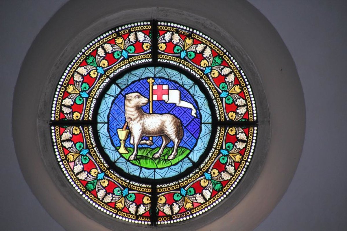 Erwähnenswert ist noch das runde Giebelfenster „Lamm Gottes“ hinter dem Altar, auf dem Christus als Lamm dargestellt wird. Als neuste Maßnahmen sind die