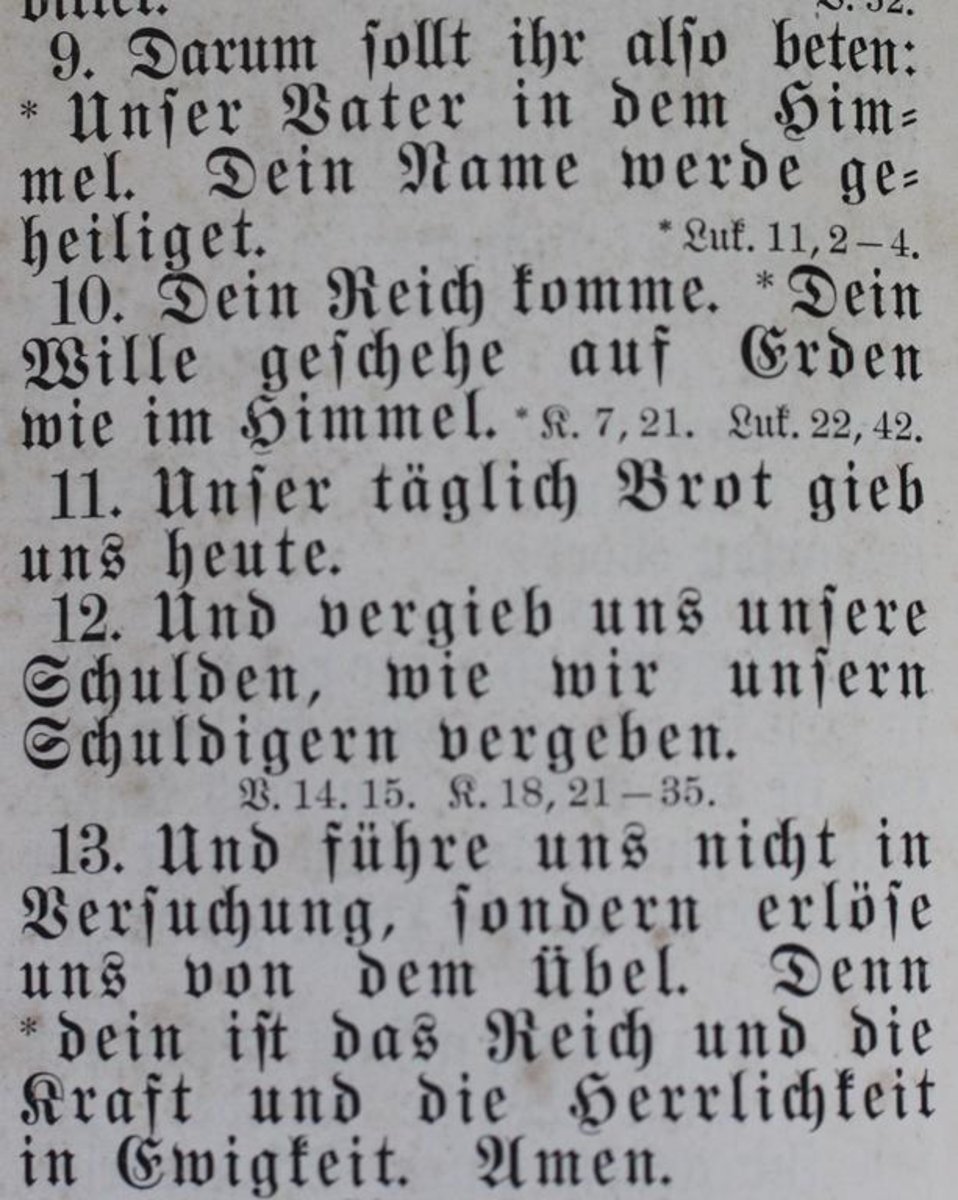 machen. Darum sollt ihr ihnen nicht gleichen. Denn euer Vater weiß, was ihr bedürft, bevor ihr ihn bittet. Darum sollt ihr so beten: Unser Vater im Himmel…”